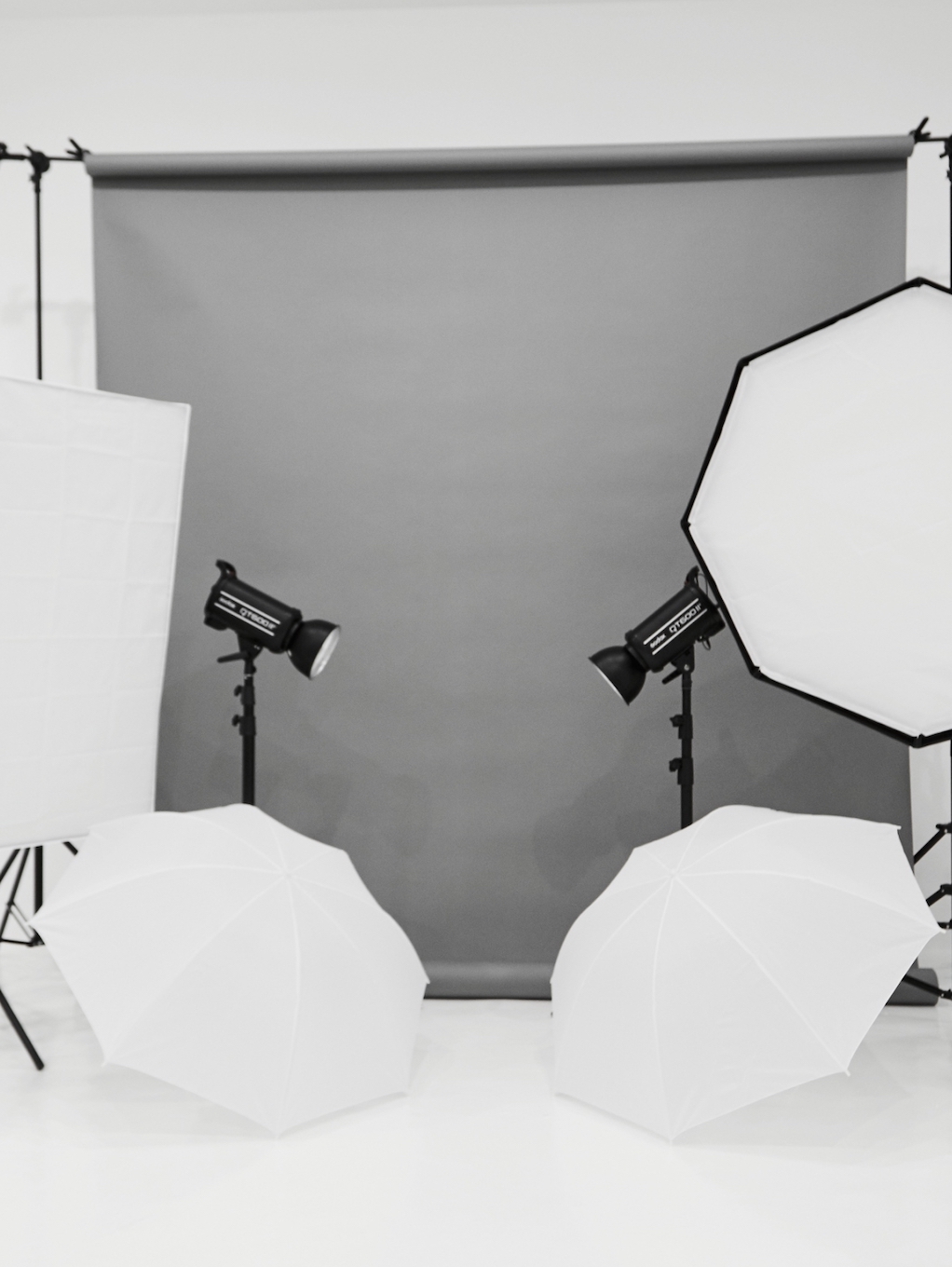 ขนาดมาตรฐาน 5.65x6.90 (39 ตารางเมตร) สามารถเช่า ถ่ายแบบเสื้อผ้า ผลิตภัณฑ์ หรือสื่อโฆษณา คอนเท้นต่าง ๆ พร้อมอุปกรณ์แฟลชพร้อมใช้งาน มีฉากกระดาษพื้น หลังให้เลือกกว่า 9 สี