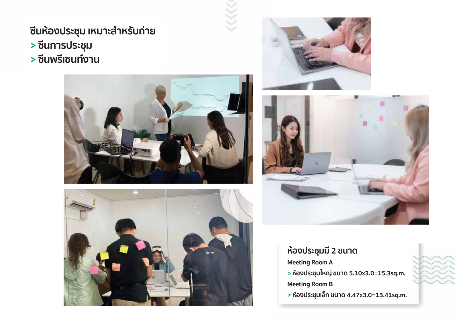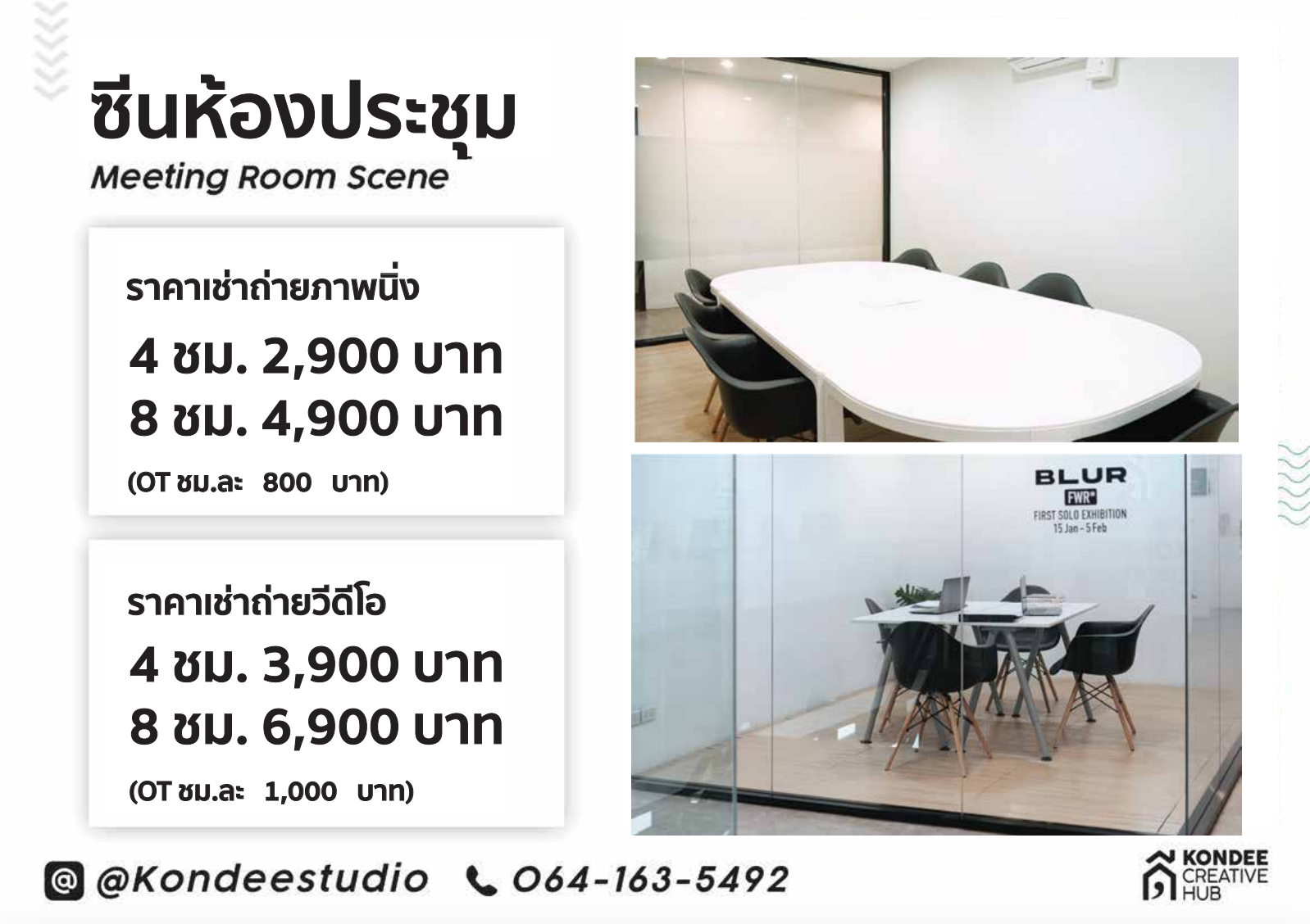 ห้องประชุมขนาดกลาง สามารถรับรองคนได้ถึง 10 คน เหมาะสำหรับถ่ายฉากประชุม พรีเซนต์งาน ติวหนังสือ